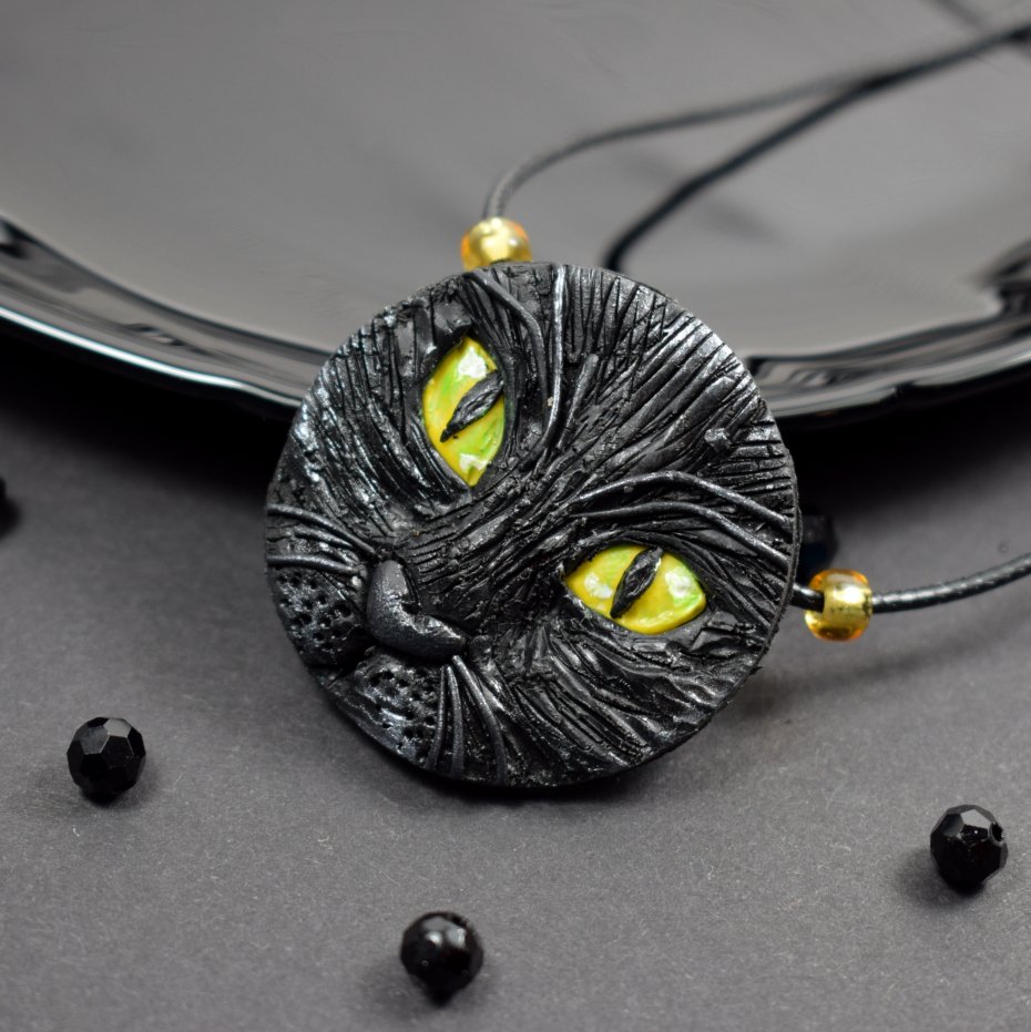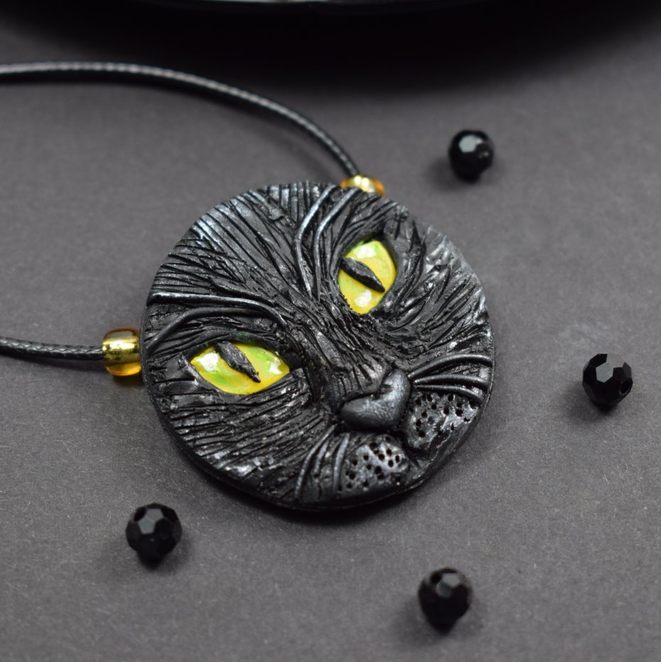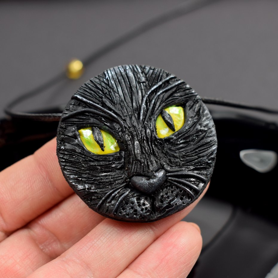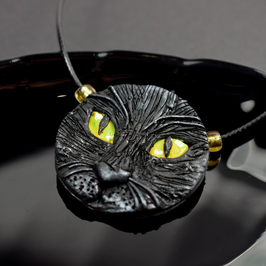 Duży, przyciągający uwage wisiorek "czarny kot" - biżuteria z charakterem.
