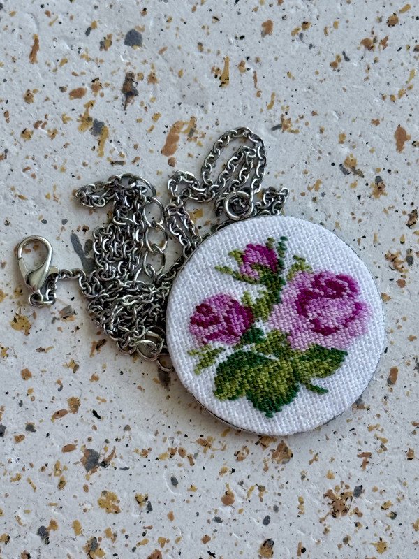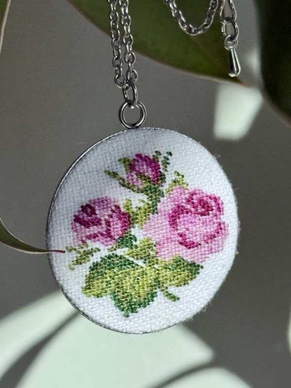 Tagi: #haftowana biżuteria, #haftowane róże, #róża, #wisiorek