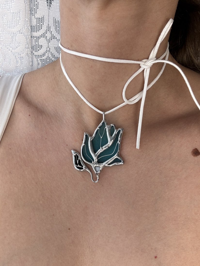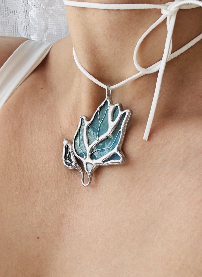 Wisiorek wykonanany ze szkła w technice Tiffany.
