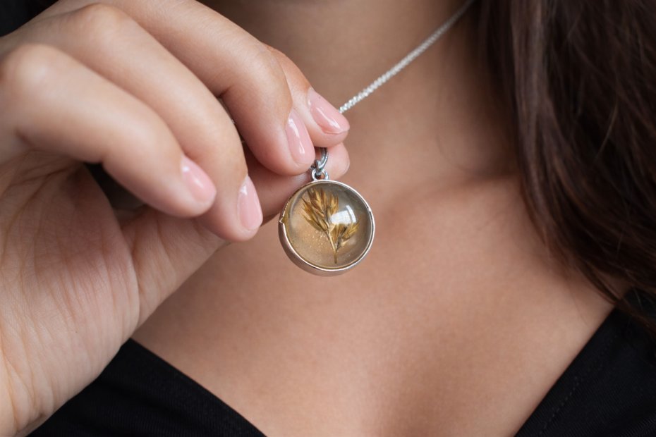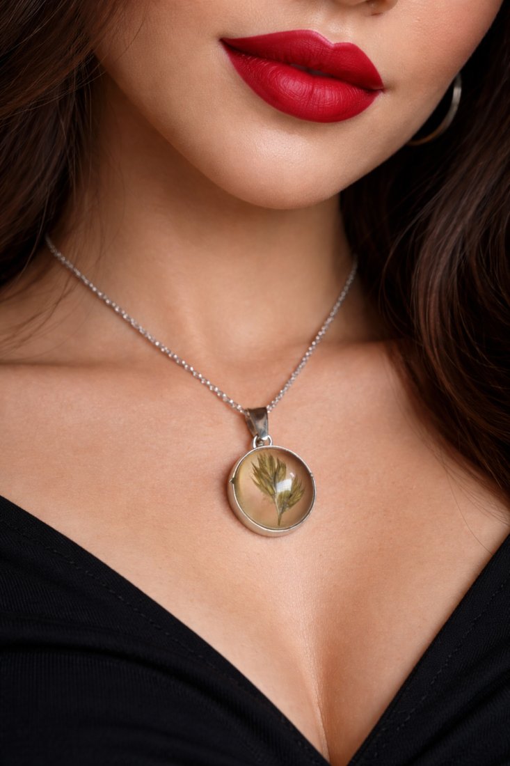 Delikatny wisiorek z prawdziwym kłosem zboża zatopionym w krystalicznie przejrzystej żywicy. Każdy egzemplarz jest unikatowy – naturalny kłos zachowuje swój kształt i strukturę, tworząc subtelną, organiczną kompozycję.Biżuteria inspirowana naturą, symbolizująca obfitość, harmonię i cykl życia. Wisiorek doskonale sprawdzi się jako wyjątkowy dodatek na co dzień lub oryginalny prezent dla osoby ceniącej rękodzieło i naturalne materiały.
