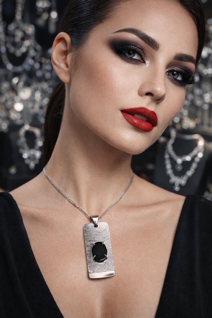 Elegancki wisiorek z naturalnym onyksem to ponadczasowy dodatek, który zachwyca swoją prostotą i głębią czerni. Starannie oszlifowany kamień osadzony jest w subtelnej oprawie, podkreślającej jego gładką, lśniącą powierzchnię. Onyks od wieków uznawany jest za kamień wewnętrznej siły, ochrony i równowagi, co nadaje biżuterii nie tylko walor estetyczny, ale również symboliczny. Wisiorek doskonale sprawdzi się zarówno jako uzupełnienie codziennych stylizacji, jak i elegancki akcent na wyjątkowe okazje.