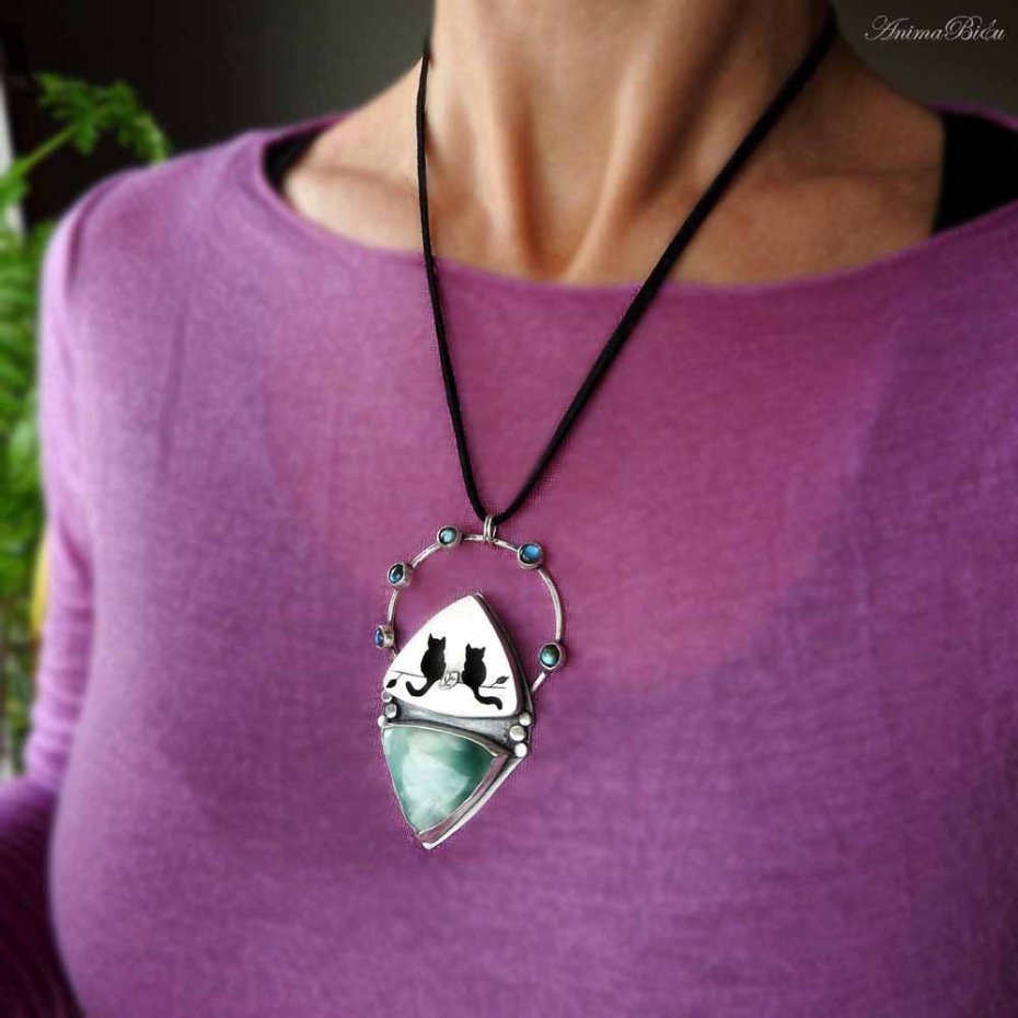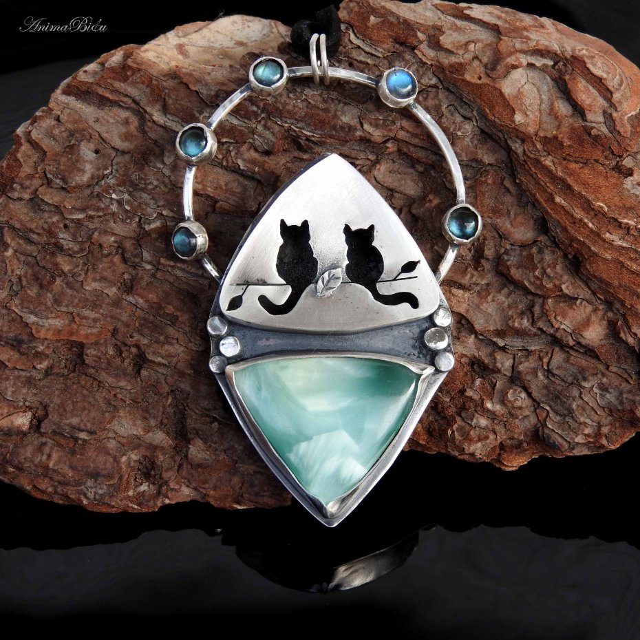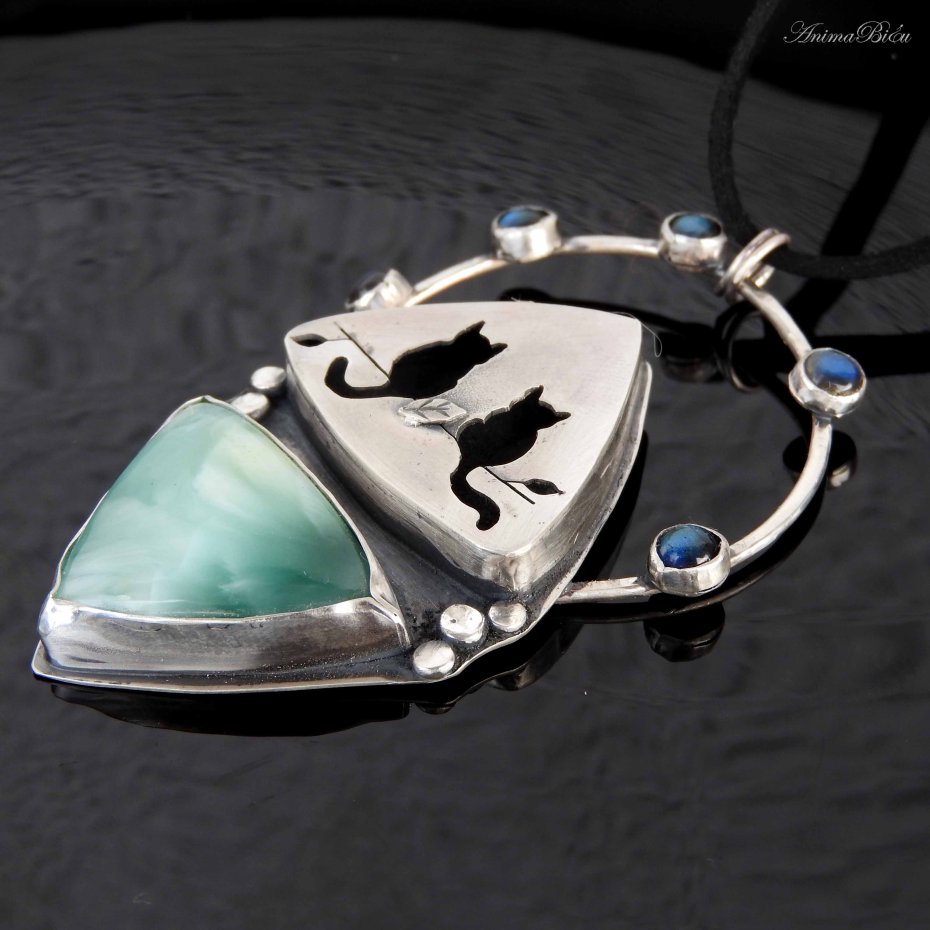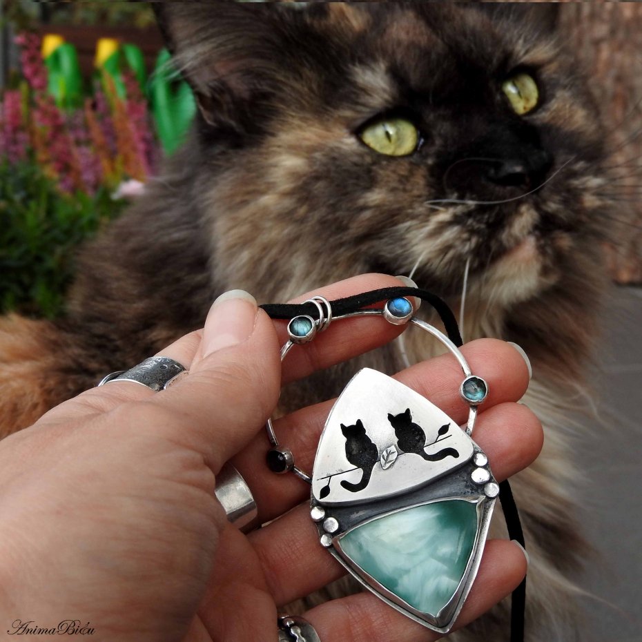 Tagi: #na prezent dla kociary, #srebrny z hemimorfitem, #srebrny z kotami, #wisiorek kot
