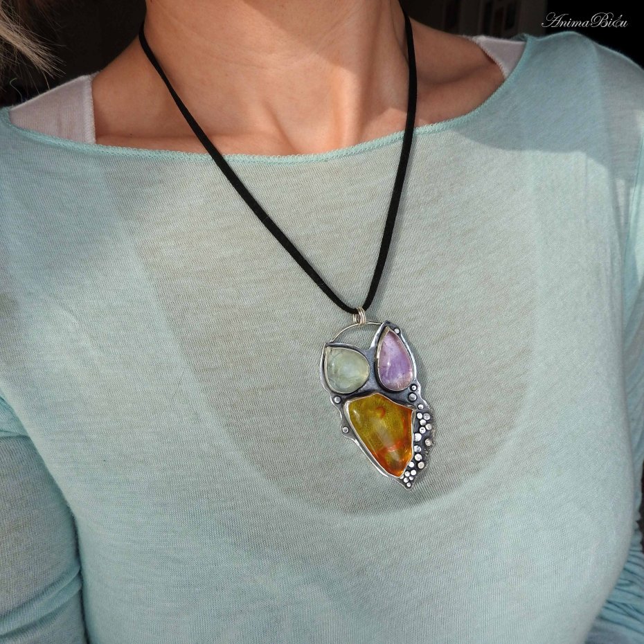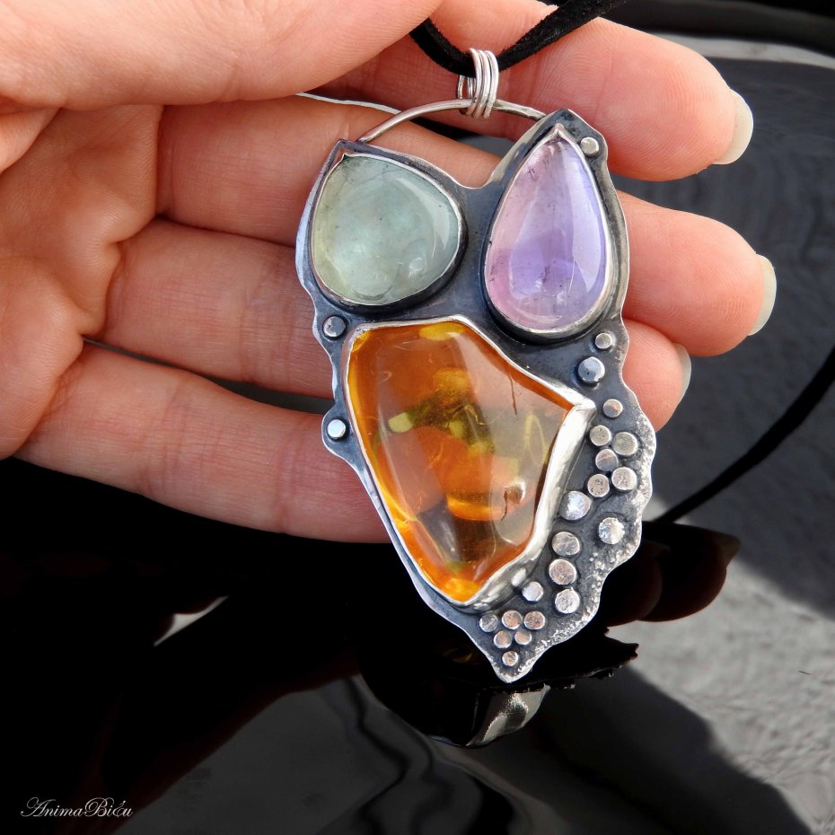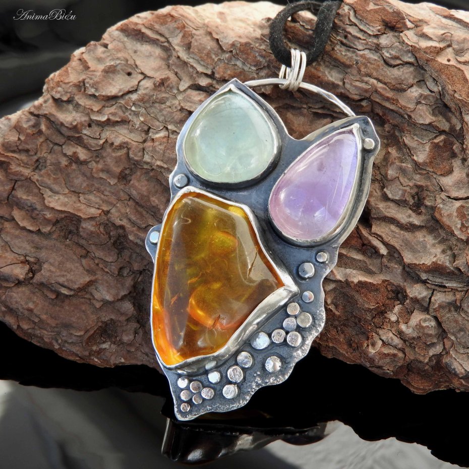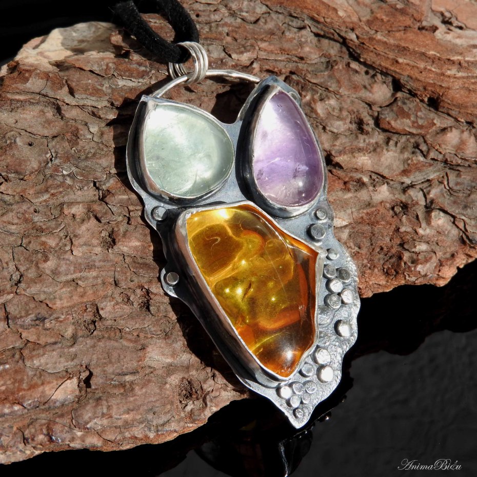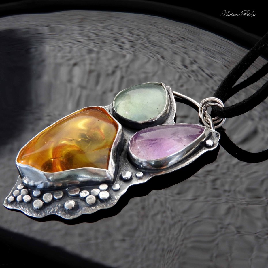 Tagi: #bursztyn bałtycki, #kolorowy wisior, #na prezent dla niej, #srebrny z ametystem