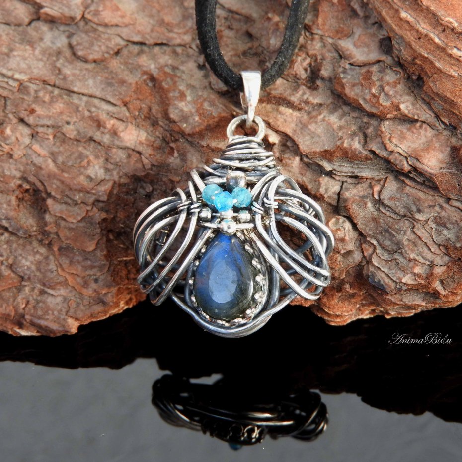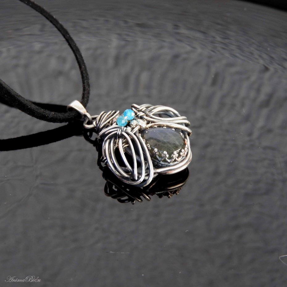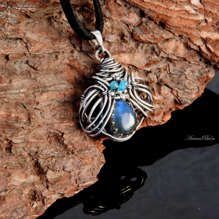 Tagi: #na prezent dla niej, #srebrny z apatytem, #wisiorek wire wrapping, #wisiorek z labradorytem
