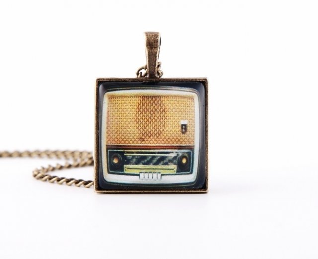 Wisiorek Stare Radio powstał na podstawie zdjęcia starego radia, które opracowałam tak, aby powstała miniaturka radia za szkłem.