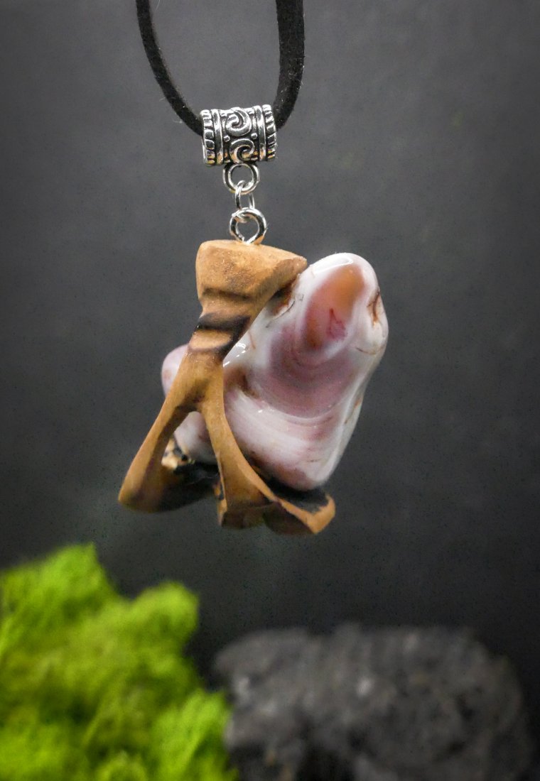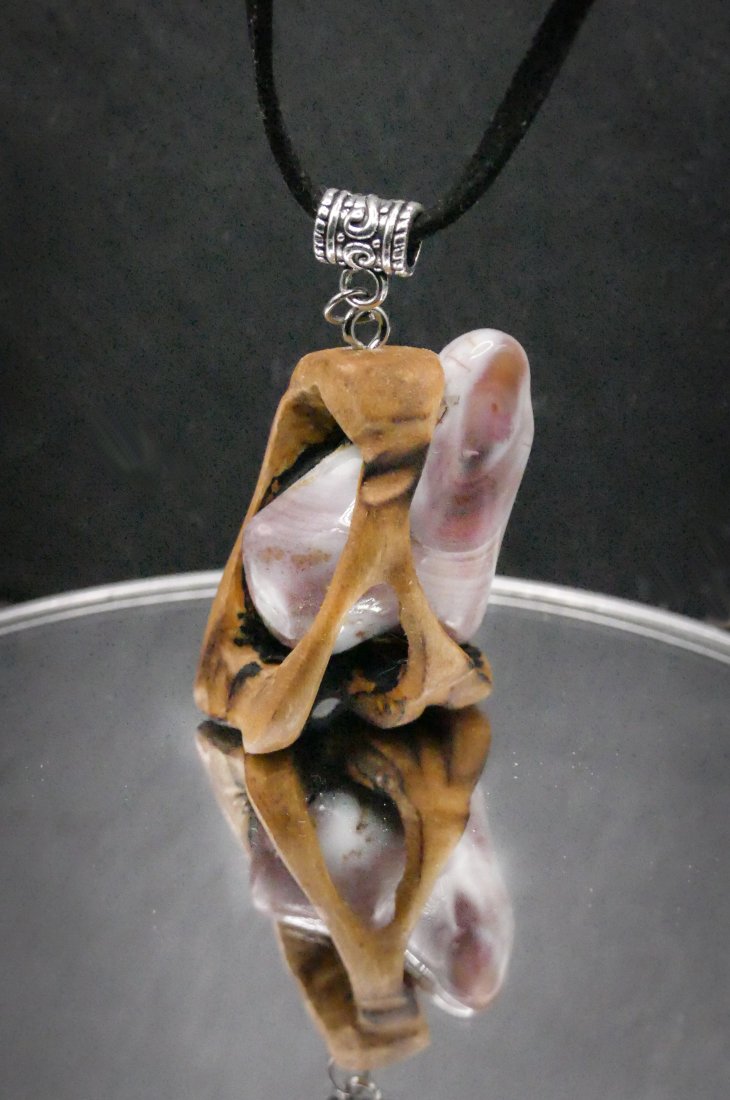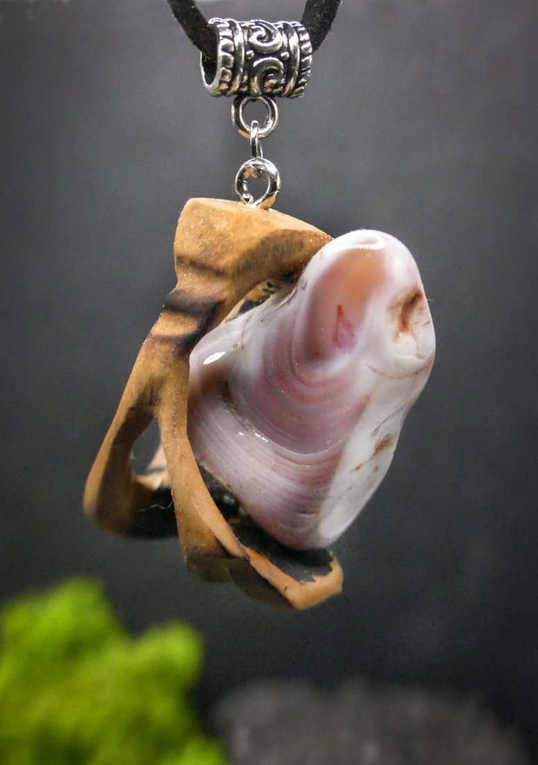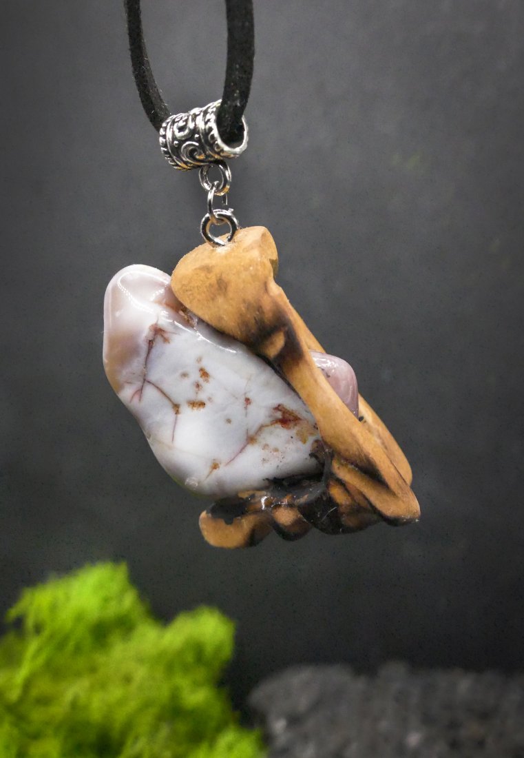 Drewniany wisiorek handmade z agatem – naturalna biżuteria artystyczna