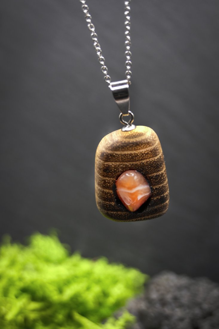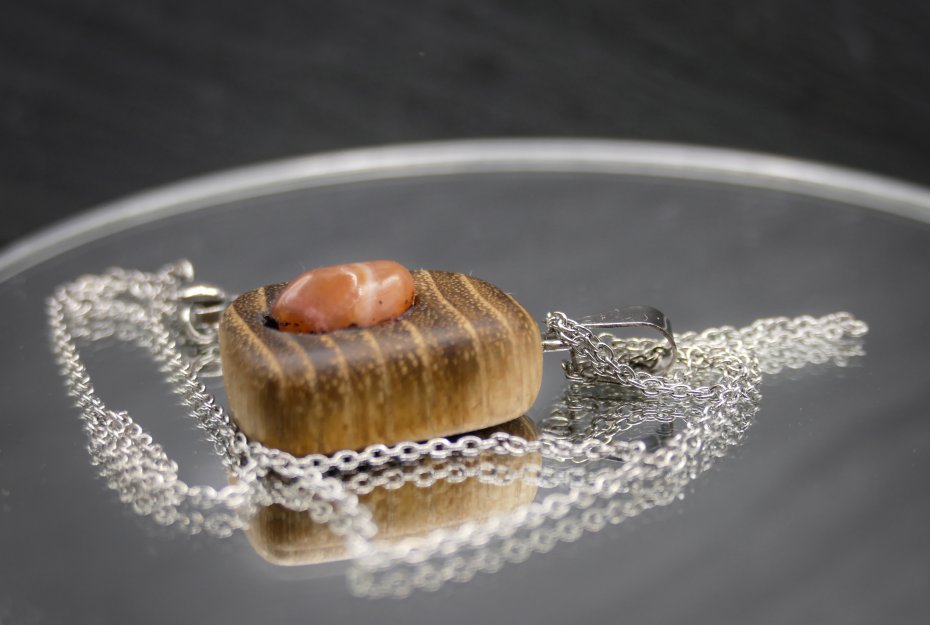 Prosty i efektowny wisiorek wykonany ręcznie z drewna akacji.