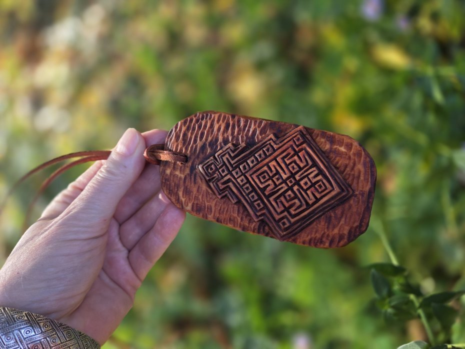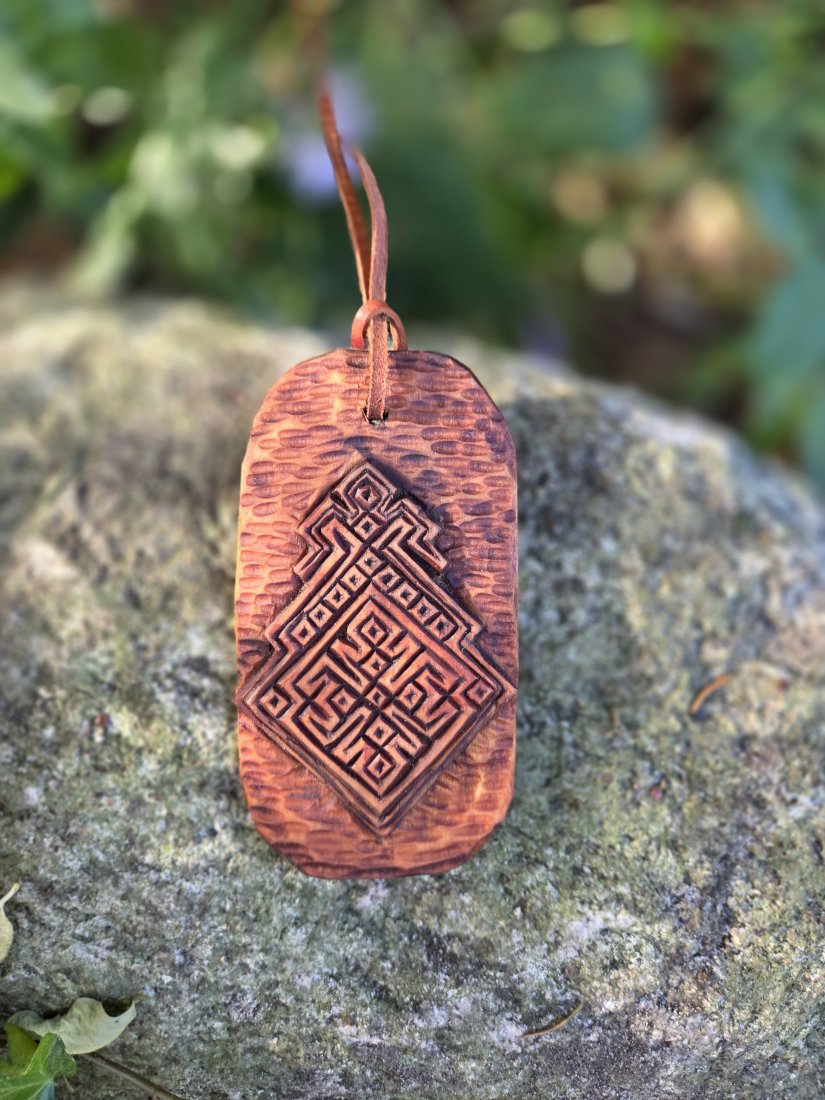 Ręcznie wykonany wisiorek z symbolem Mokoszy, słowiańskiej bogini płodności, ziemi, kobiet i urodzaju. To mocny, starożytny symbol chroniący kobiety.