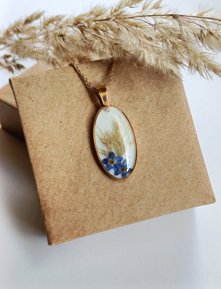 Naszyjnik z niezapominajka i nasionami dmuchawca