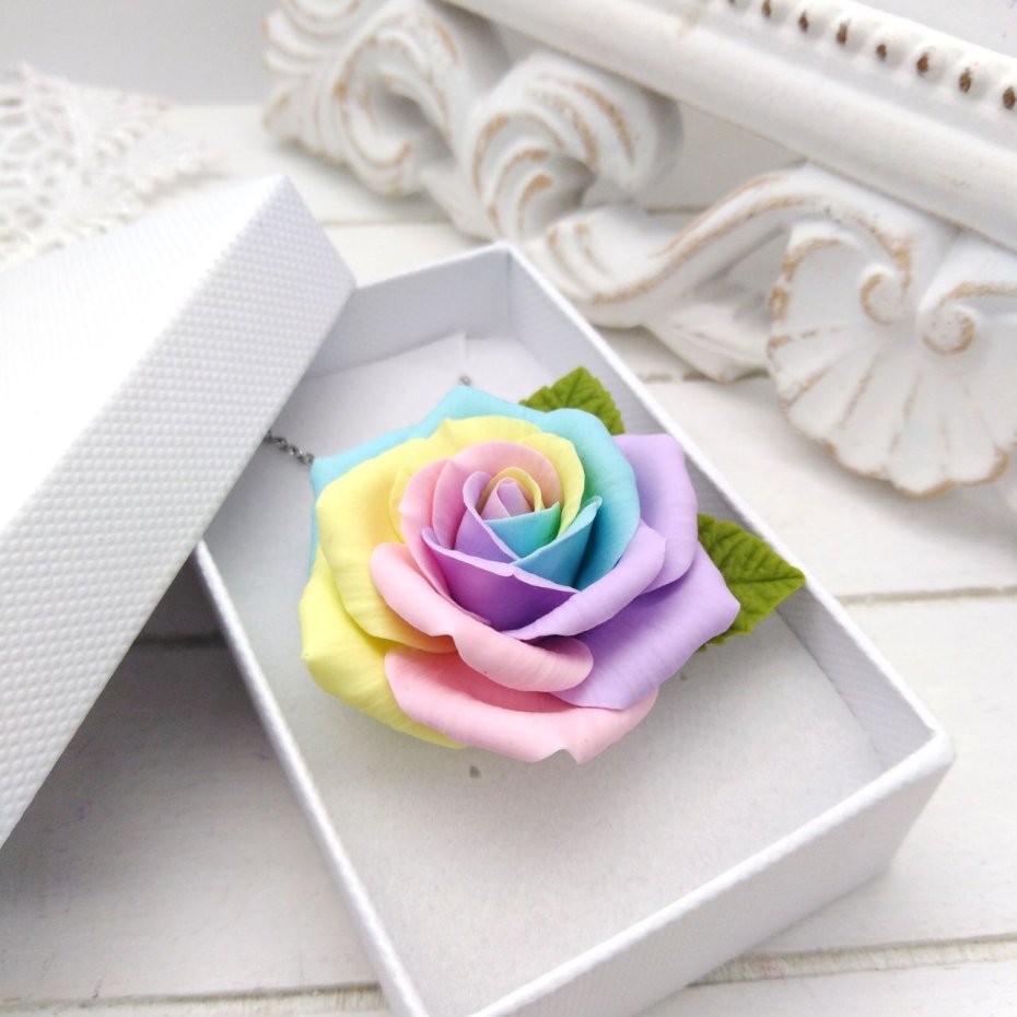 Tagi: #biżuteria kwiatowa, #tęczowa róża, #wisiorek handmade, #wisiorek róża