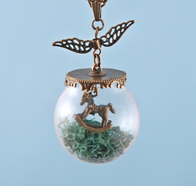 Naszyjnik - wisiorek z kulą, która ma w sobie magiczny urok i bajkowy klimat. Kula sprawia wrażenie szkła, ale to doskonała bezpieczna imitacja, która nie stłucze się.
