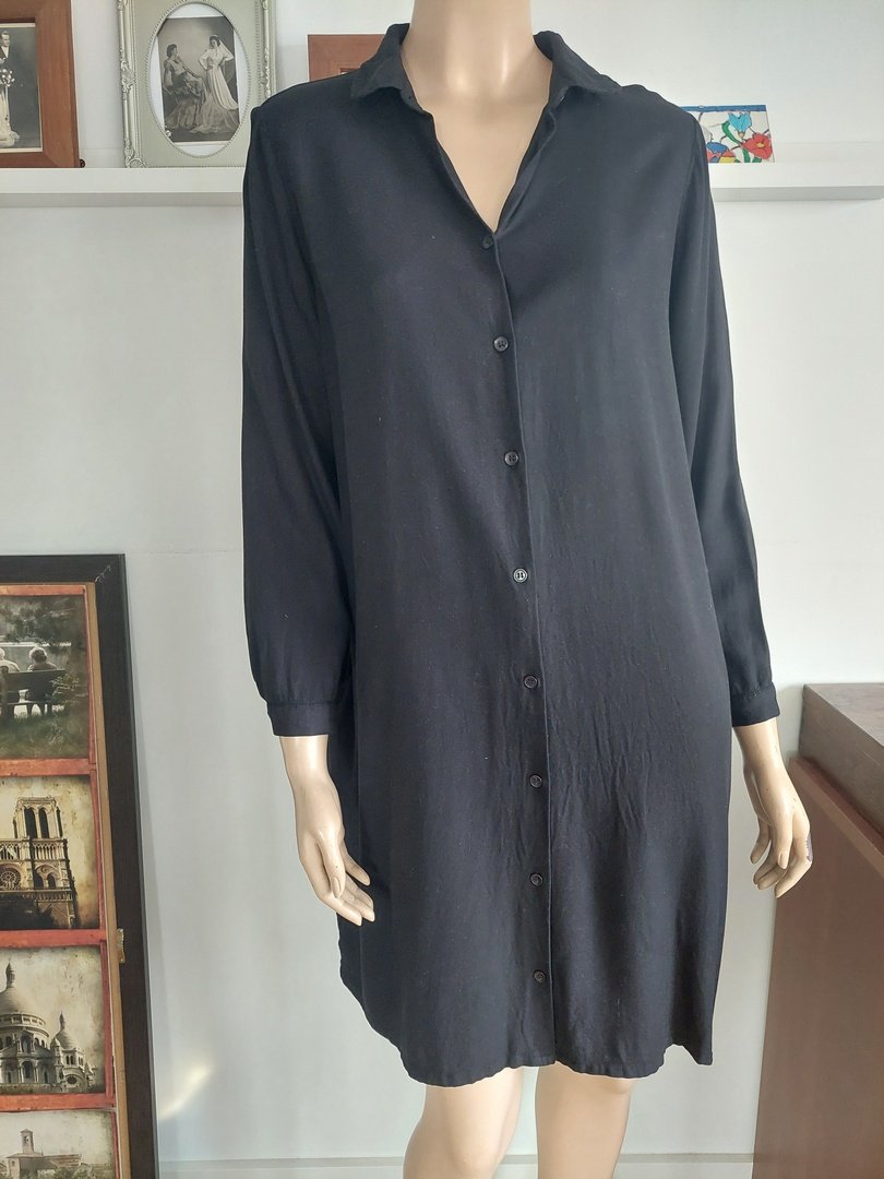 sukienka marki Monki, zapinana na małe guziczki. szeroki fason z zakładkami z tyłu i z kieszeniami do wewnątrz. rozmiar z metki s, ale to duży rozmiar proszę sprawdzić wymiary. na manekinie małe 38, materiał 100% wiskoza. kolor czarny. w bardzo dobrym stanie
