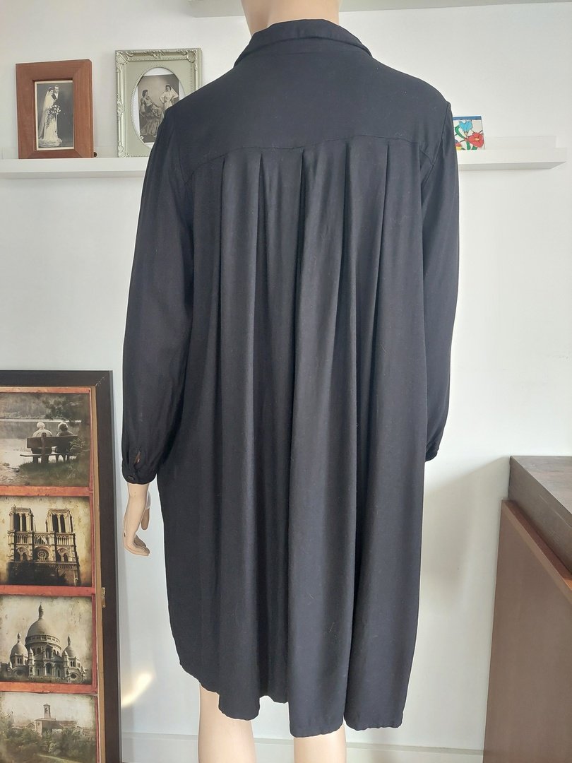 sukienka marki Monki, zapinana na małe guziczki. szeroki fason z zakładkami z tyłu i z kieszeniami do wewnątrz. rozmiar z metki s, ale to duży rozmiar proszę sprawdzić wymiary. na manekinie małe 38, materiał 100% wiskoza. kolor czarny. w bardzo dobrym stanie