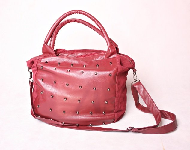 Pojemna torba w kolorze wiśnowym /kolor trochę ciemniejszy jak na zdj./plus nity,skóra ekologiczna w połączeniu z eko zamszem?stan bardzo dobry,mieści A4,szer.35cm,wys.36cm,glebokosc 19cm,w srodku jedna kieszonka na zamek i dwie mniejsze bez