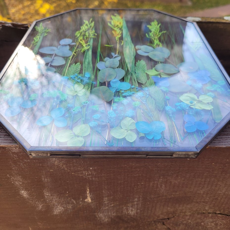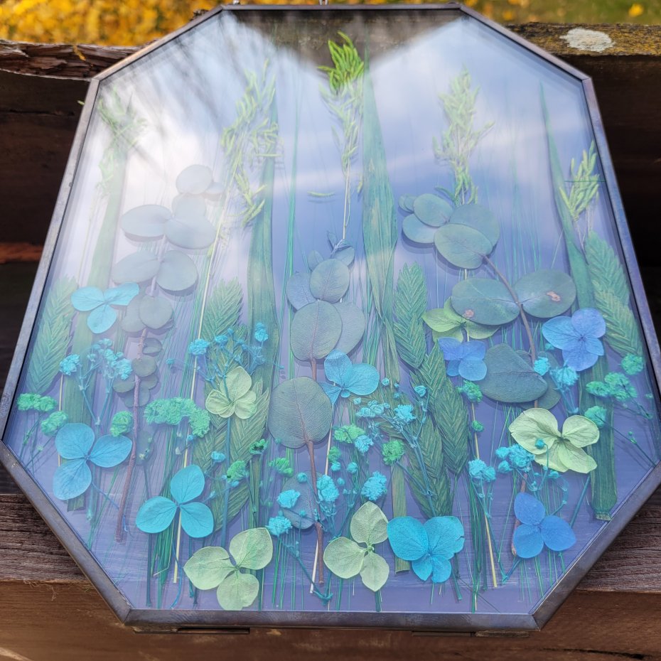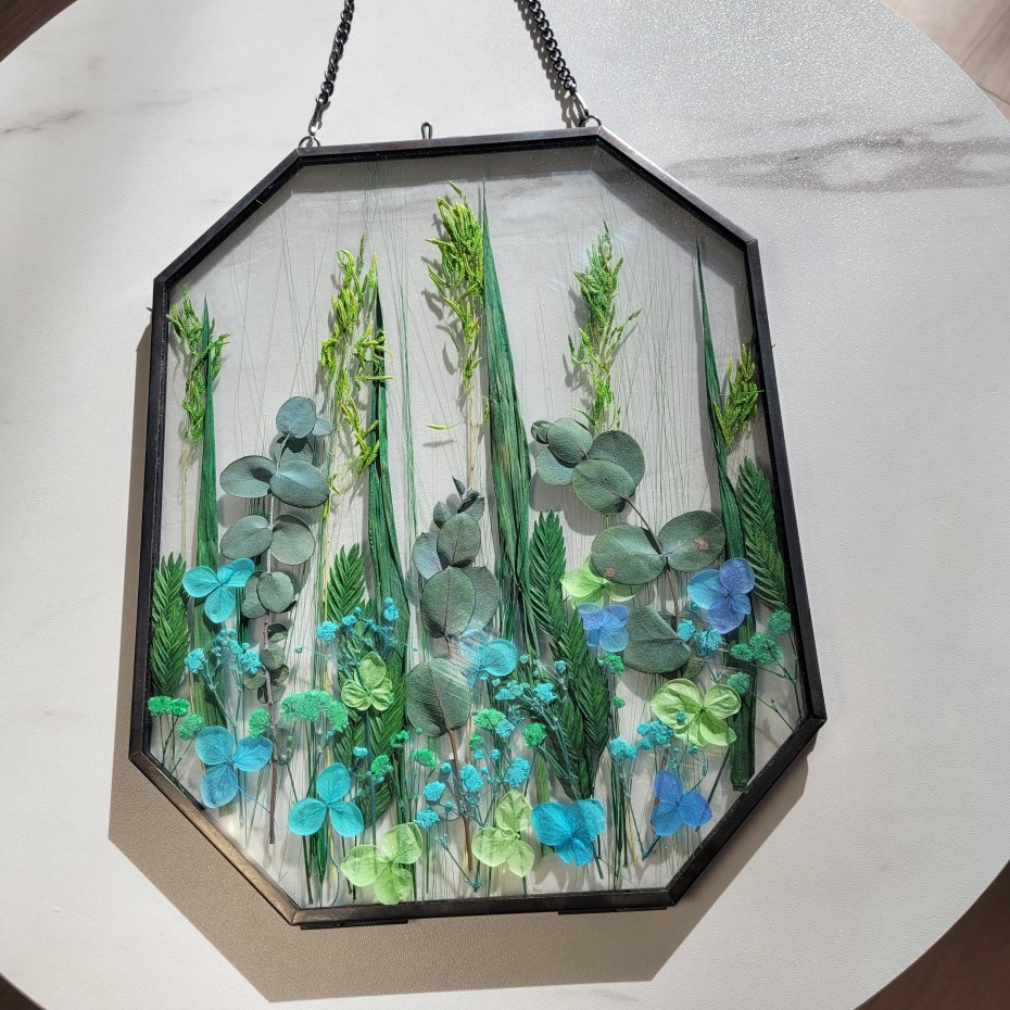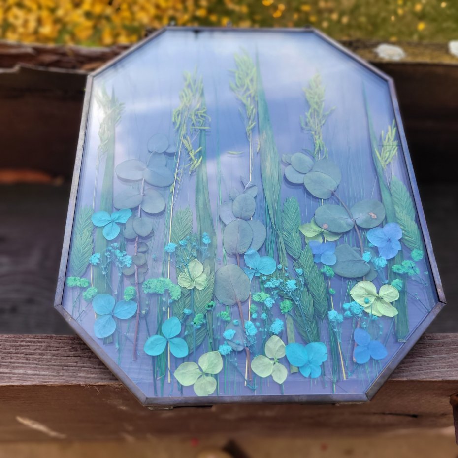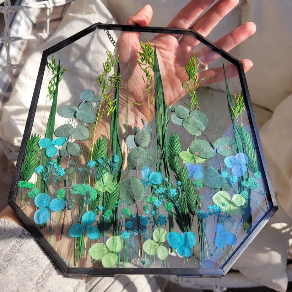 Unikalna dekoracja do Twojego domu – prawdziwa kompozycja z naturalnych, suszonych roślin zamkniętych między dwiema taflami szkła.
