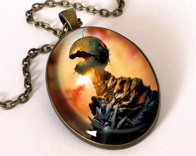 Ręcznie robiony duży owalny medalion z wysokiej jakości grafiką.