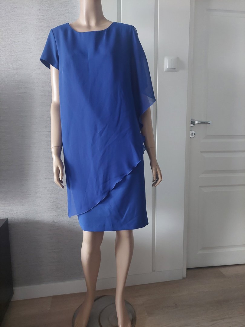 sukienka marki elizabeth collection w kobaltowym kolorze. materiał prawdopodobnie poliester. fason lekko taliowany, pod spodem podszewka. Rozmiar z metki 44, proszę sprawdzić wymiary, na manekinie 38. stan bardzo dobry ( delikatne ślady chyba bo broszce)
