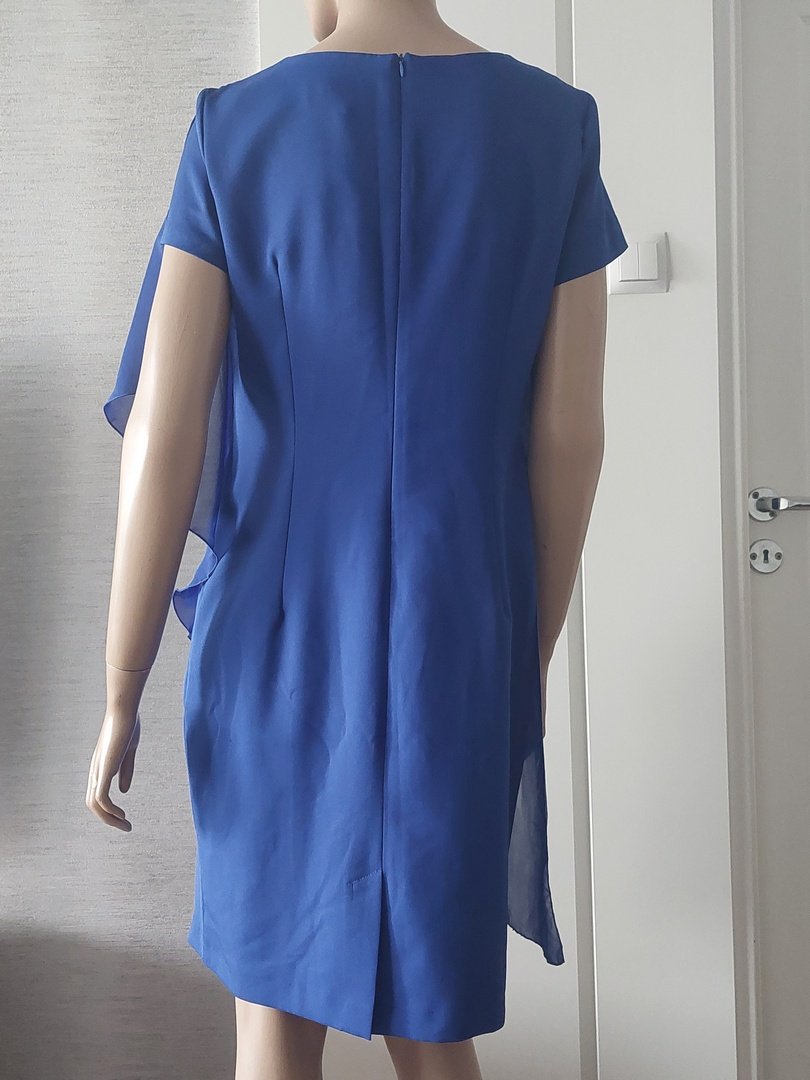 sukienka marki elizabeth collection w kobaltowym kolorze. materiał prawdopodobnie poliester. fason lekko taliowany, pod spodem podszewka. Rozmiar z metki 44, proszę sprawdzić wymiary, na manekinie 38. stan bardzo dobry ( delikatne ślady chyba bo broszce)