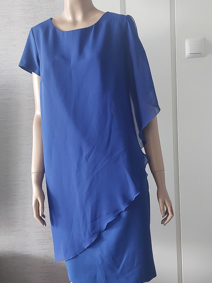 sukienka marki elizabeth collection w kobaltowym kolorze. materiał prawdopodobnie poliester. fason lekko taliowany, pod spodem podszewka. Rozmiar z metki 44, proszę sprawdzić wymiary, na manekinie 38. stan bardzo dobry ( delikatne ślady chyba bo broszce)