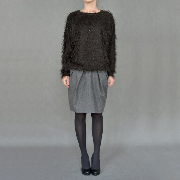 Świetny, włochaty sweterek ozdobiony dyskretnie niewielką ilością cekinów, które powodują, że jest migoczący - ale nie nachalnie. Krój lekko nietoperzowy, luźny pod pachami. Marka BIK BOK. Polecam.