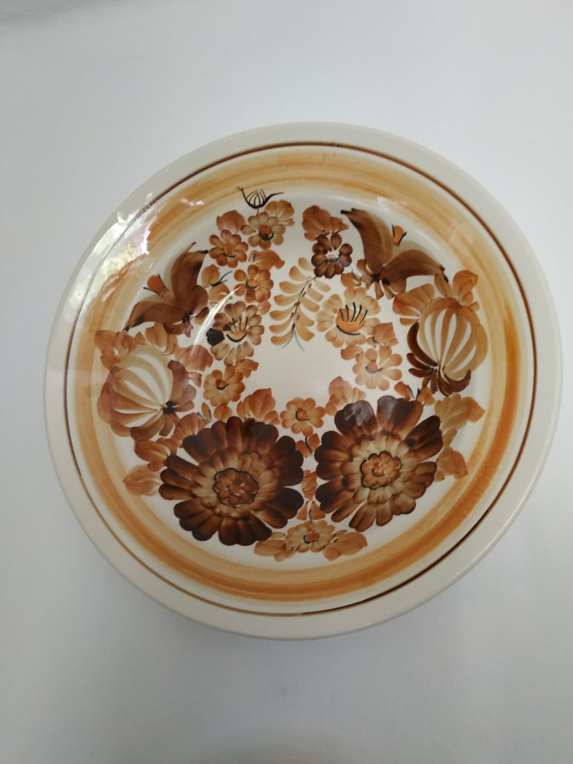 Ozdobny talerz fajansowy z Włocławka. Możliwość zawieszenia.