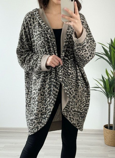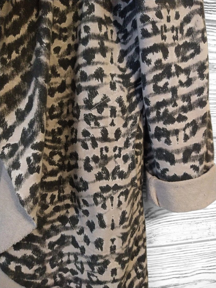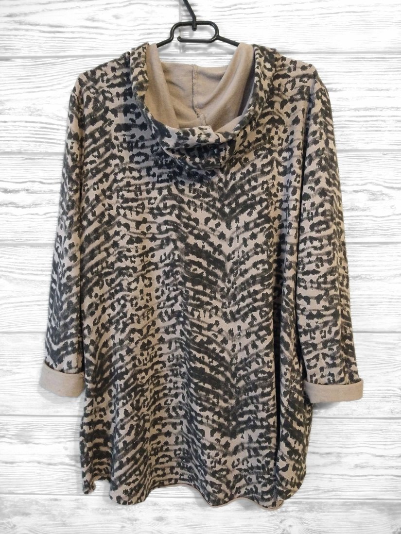 Bluza oversize z kapturem w beżowo grafitowy print.