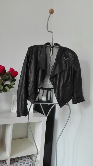 Włoska kurta skórzana. Firma Paolo Casalini. Rozmiar 40/L. Wymiary: obwód biustu-49cmx2, długość rękawa-60cm, długość kurtki-51cm.