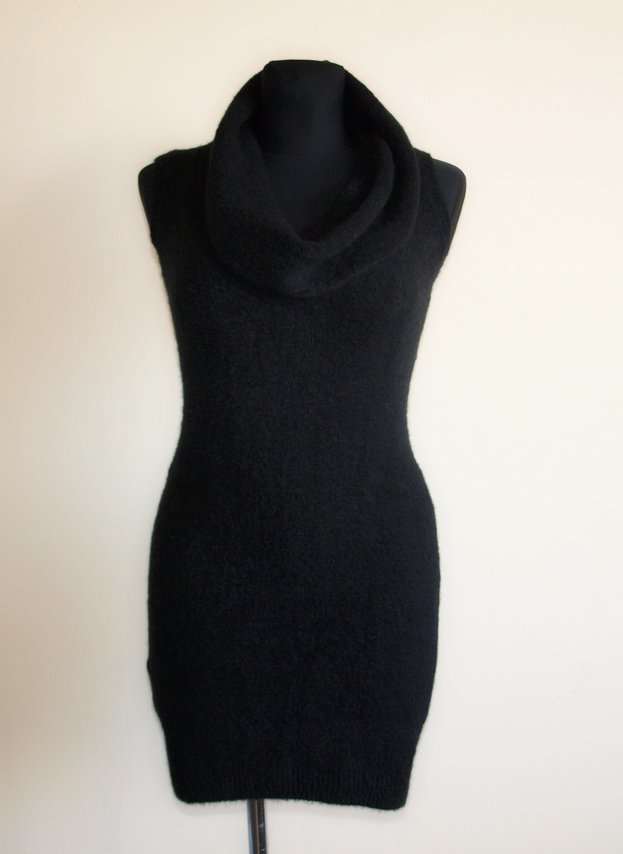 Tunika z luźnym golfem, produkcji włoskiej. Materiał 54% akryl,20% poliamid, 15% moher, 1% elastan. Dzianina naciaga sie i dopasowuje do figury. Stan bardzo dobry, jak nieużywana. Brak metki z rozmiarem. Powinna pasować na od 34 do małe 38. Na manekinie o rozmiarze 38. Podaję wymiary mierzone na płasko;