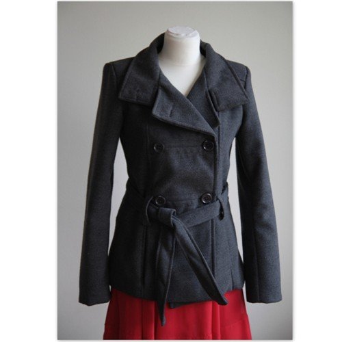 Klasyczna dwurzędówka z różnymi możliwościami układania kołnierza, w komplecie pasek w tym samym kolorze, polecam!