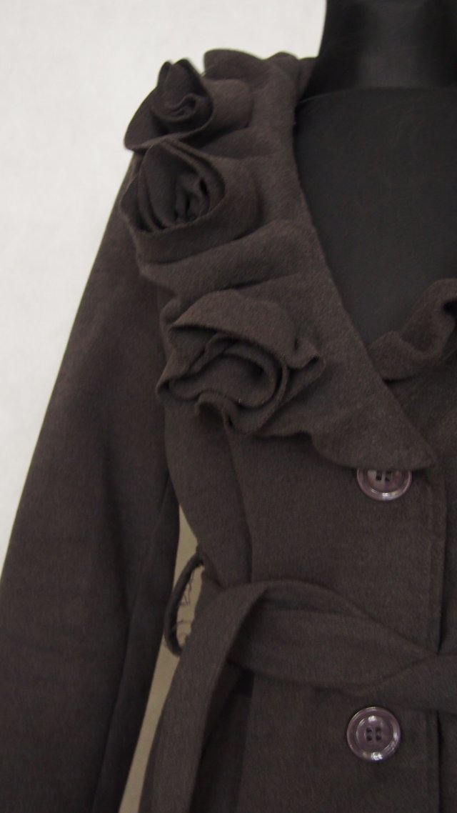 Prześliczny płaszczyk z wełny, poliestru i elastyny. Wyprodukowany we włoszech. Wiązany w pasie, dwie kieszonki.