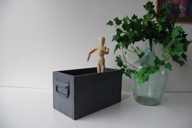 Wojskowa skrzynka. Kolor szary. W środku wyjmowane jedno dno, w obudowie oryginalnie dwa otwory. Uchwyty po dwóch stronach. Ciężka i masywna.