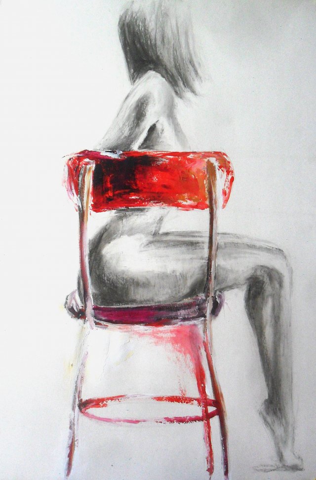 Praca w technice mieszanej na brystolu kredowym w tonacji ciepłej bieli.Format 100x70cm.Polecam.