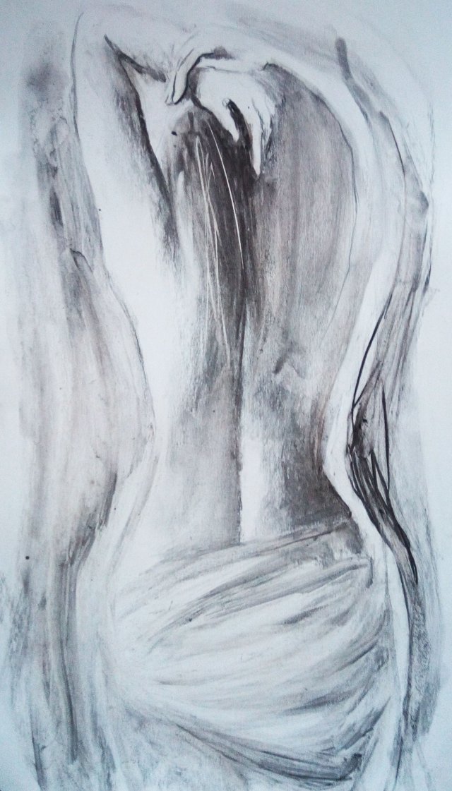 Rysunek w węglu na brystolu kredowym w tonacji ciepłej bieli.Format 30x50cm.Polecam.