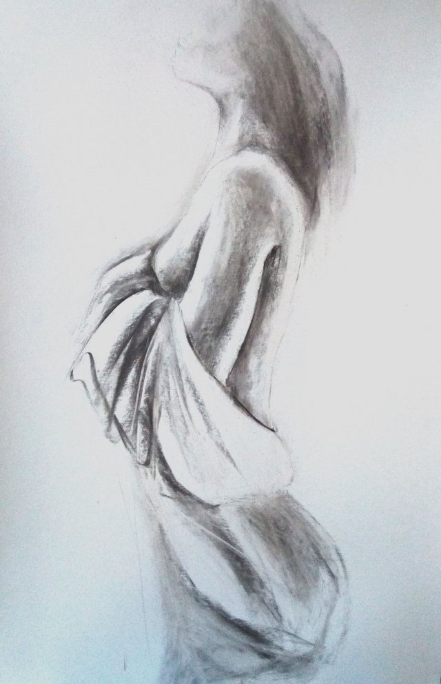 Rysunek w technice węgla na brystolu kredowym w tonacji ciepłej bieli.Format 50x70cm.Polecam.