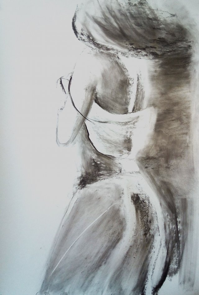 Rysunek w technice węgla na podłożu w tonacji ciepłej bieli (brystol kredowy)