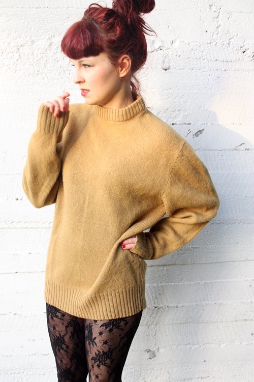 sweter z wełny,kolor-ciemny pomarańcz, rozmiar s/m. z tyłu zaszyte malowidoczne dwie małe dziurki.,osoba na zdj.nosi rozm.S