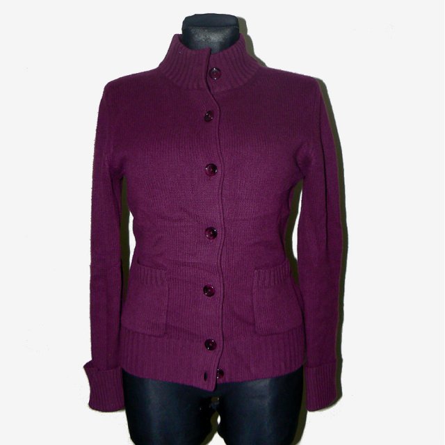 Ciemno fioletowy kardigan od Marco Pecci ze znakiem jakości Woolmark. Mięciutki i ciepły, niegryzący.