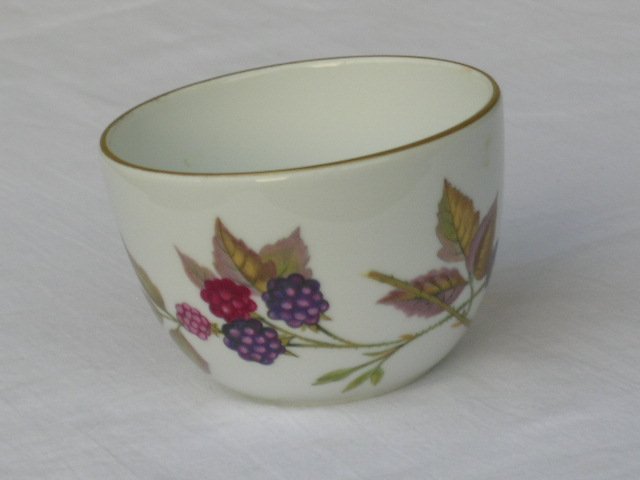 Porcelanowa miseczka sygnowana jakością Royal Worcester - owocowa seria Evesham; projekt z 1961 roku. Jakość, klasa i elegancja na pokolenia :) Złocenie i błyszczące szkliwienie. Przyjemny dźwięk. Dół 4,5; góra 8,5; wys. 5,5 cm. Stan zachowania bardzo dobry.