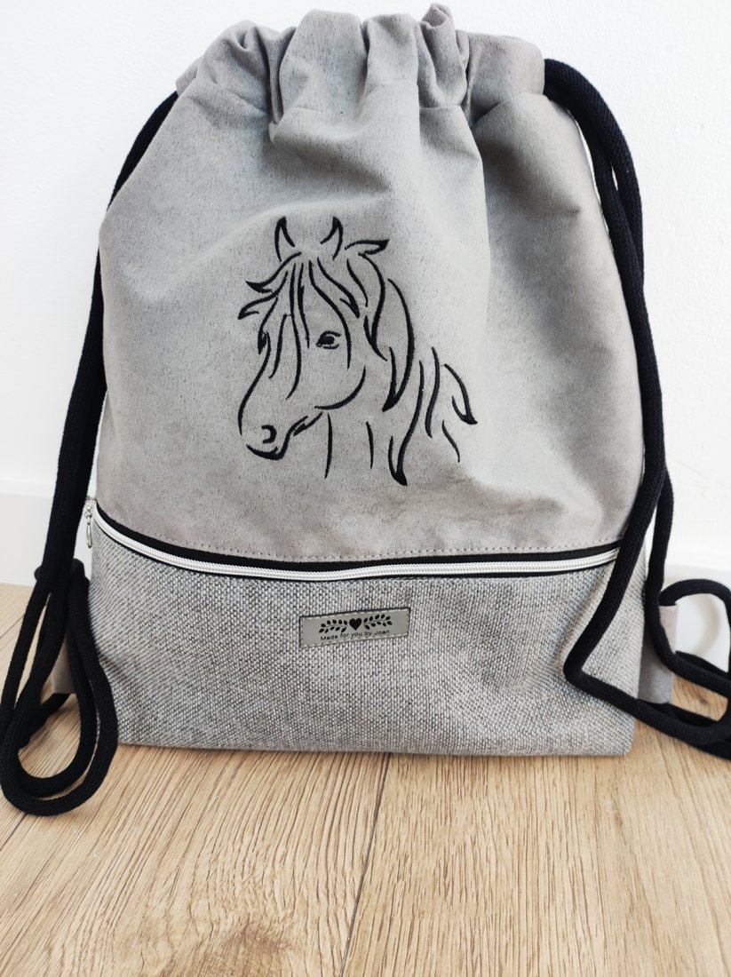 Worek wykonany z dwóch materiałów zewnętrznych,