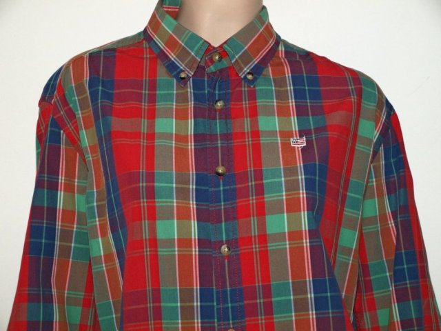 śliczna, sportowa koszula vintage marki wrangler, w kolorową kratę. prosty, luzny fason. koszula jest męska, ale myślę, że chętnie założą ją także panie. Materiał 100% bawełna. rozmiar z metki M, na manekinie o rozmiarze 38.stan bardzo dobry, są zapasowe guziki. Podaję wymiary mierzone na płasko;
