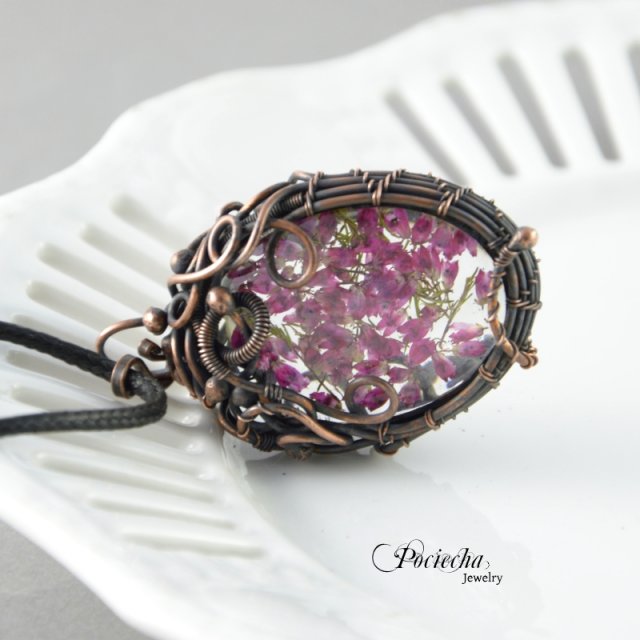 Tagi: #miedź, #naszyjnik terrarium, #szkło, #wrzos