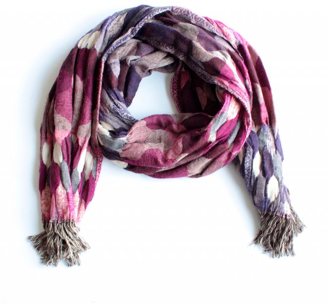 Miękki, duży, kolorowy szal o ciekawej strukturze. Materiał jest elastyczny, rozciąga się w szerz.