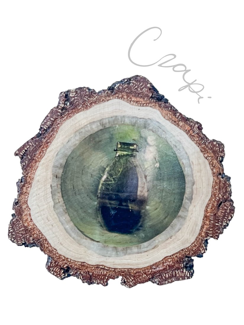 kolaż autorskich fotografii "drukowany" na brzozowym plastrze