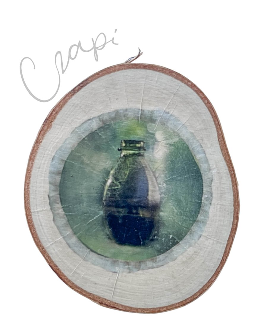 kolaż autorskich fotografii "drukowany" na brzozowym plastrze