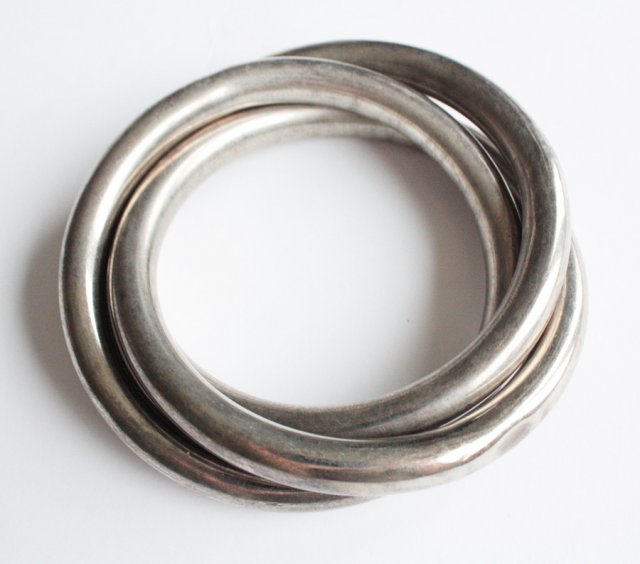 Oryginalna, potrójna bransoletka w kolorze starego srebra. Bransoletka będzie odpowiednia na bardzo szczupłą dłoń, gdyż otwór jest nieduży i bransoletka nie jest zapinana.