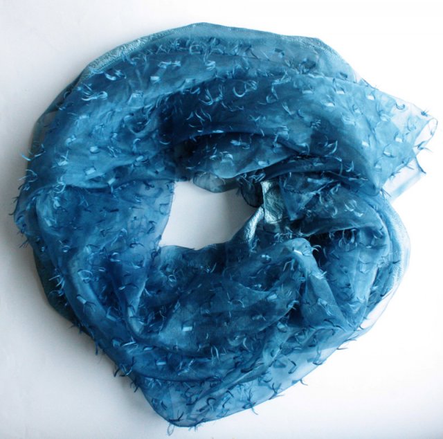 Wielki, półtransparentny szal o ciekawej strukturze. Można owinąć nim szyję lub zarzucić na ramiona do eleganckiej kreacji.