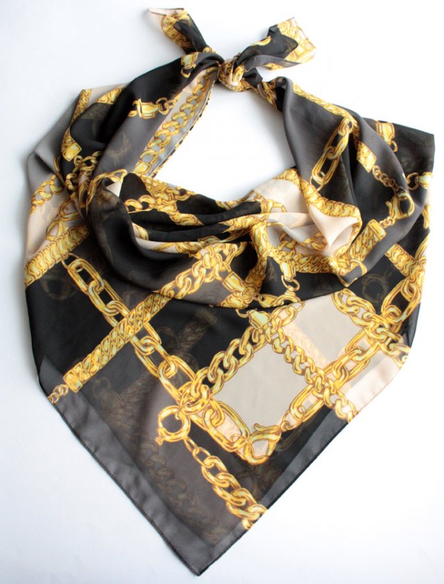 Piękna, zwiewna, duża chusta we wzory w stylu domu mody Hermes. Materiał to prawdopodobnie poliester.