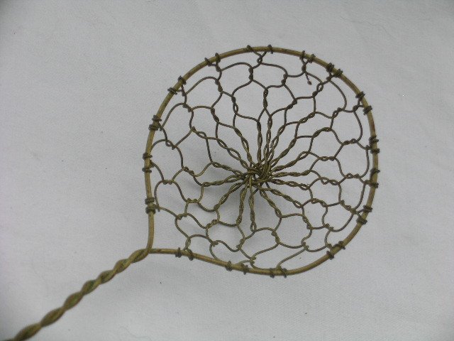 Fantastyczna metalowa, ręcznie kręcona druciana łyżka - wielce praktyczna i z polotem zaprojektowana - do jajek, brukselki, etc... 22,5 x 6 cm. Stan zachowania bardzo dobry.