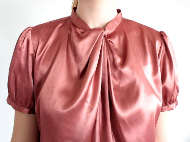 Niezwykle elegancka bluzka marki Mango o ciekawym fasonie. Materiał oceniam na jedwab naturalny lub syntetyczny. Ciekawy kolor balansujący na granicy bardzo jasnej mlecznej czekolady wpadającej w pudrowy zgaszony róż.