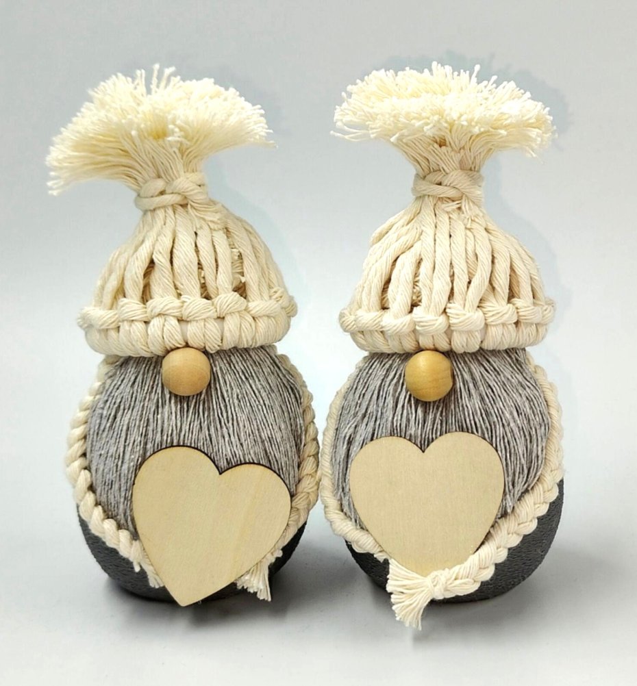 Gnom wykonany na korpusie z wydruku oraz ręcznie plecionych sznurków.
